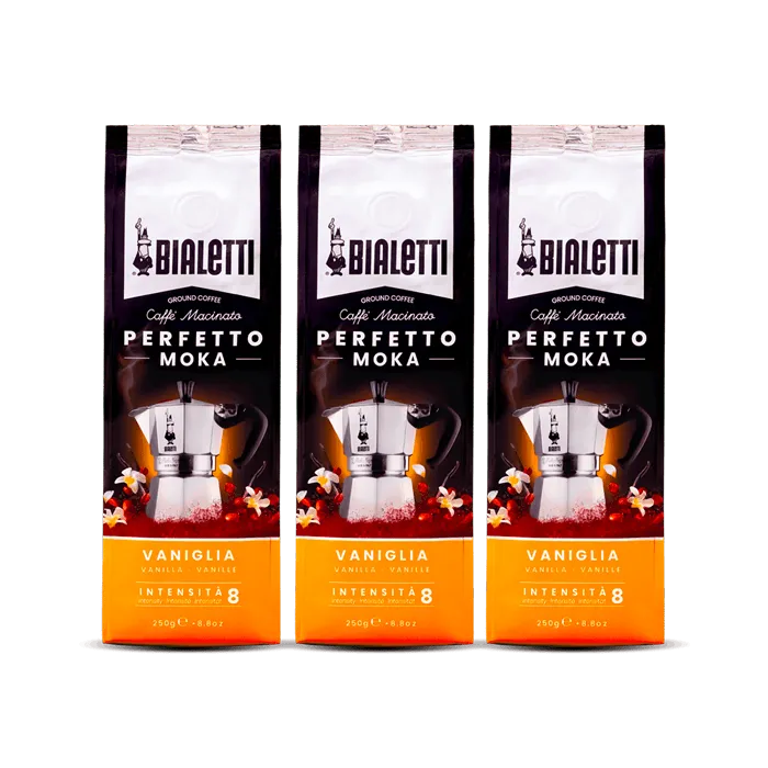 El café molido Perfetto Moka Vaniglia es el café perfecto para tu cafetera Moka.